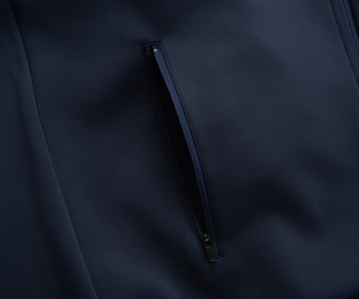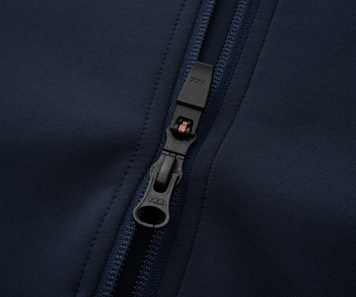 ・ハイネックファスナー開閉時の顔周りの挟み込みを防ぐチンガード有り。